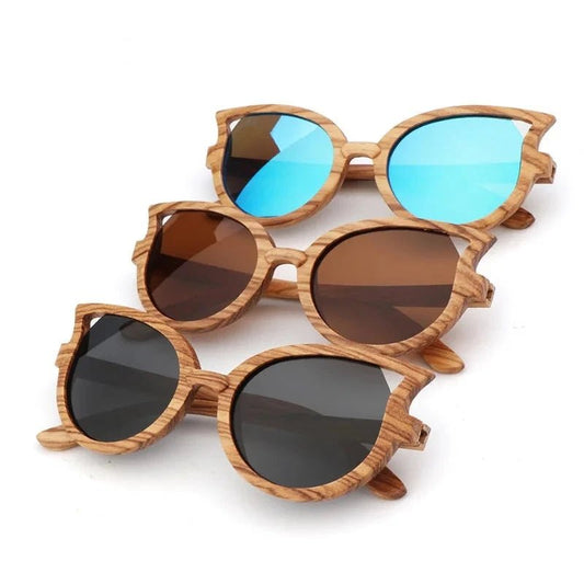 Damen Designer-Katzenaugen Zebranoholz-Sonnenbrille